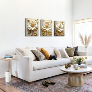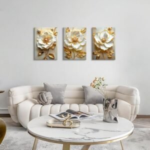 Be the first to review “Modern White Floral Golden Leaves Canvas Wall Art Set, Neutral 3d Textured Flowers Wall Painting Pictures Boho Beige Blossom Wall Decor Posters Print Artwork for Bedroom Living Room Office 16×24″x3Pcs”