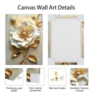 Modern White Floral Golden Leaves Canvas Wall Art Set, Neutral 3d Textured Flowers Wall Painting Pictures Boho Beige Blossom Wall Decor Posters Print Artwork for Bedroom Living Room Office 16x24"x3Pcs